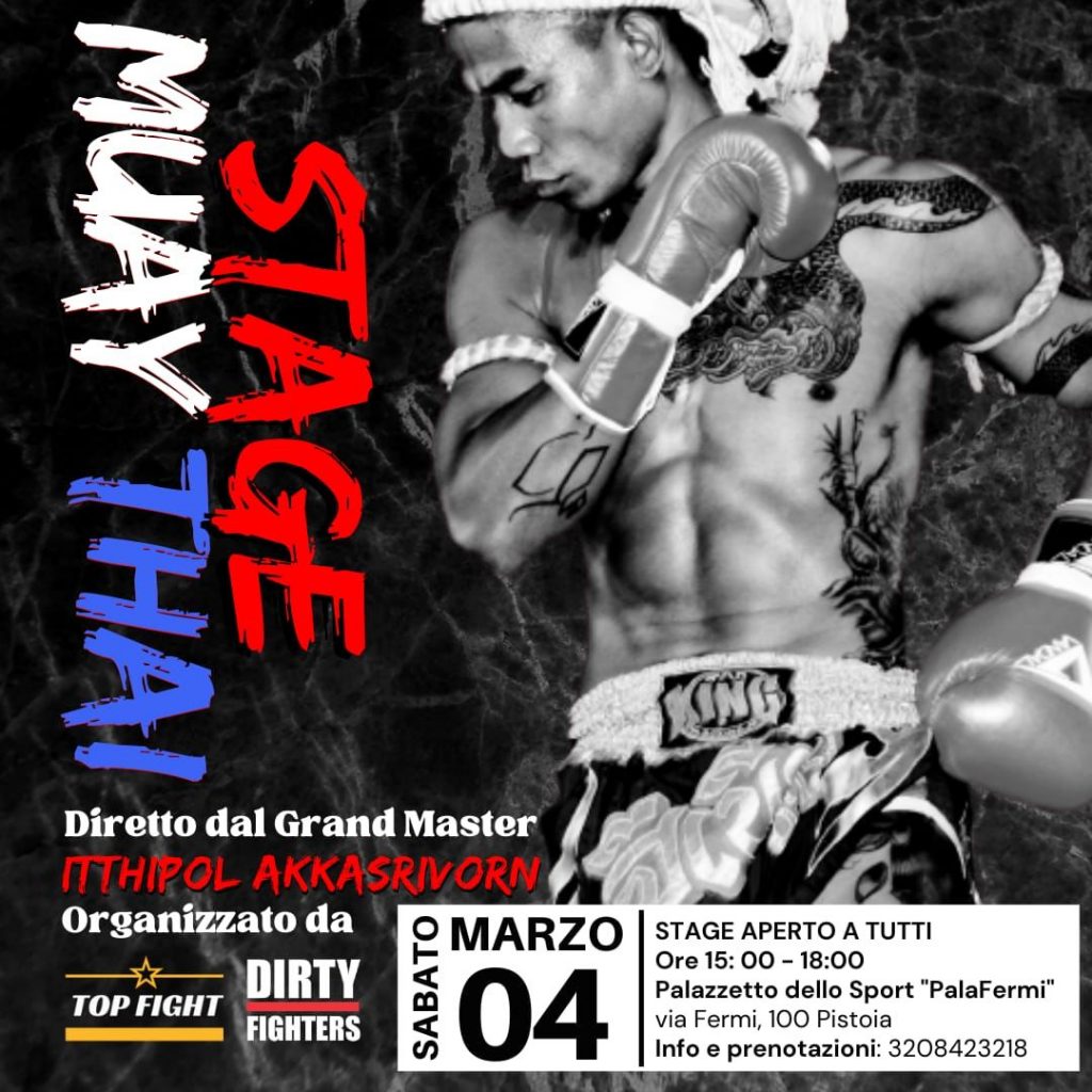 Domenica insolita per il parquet di via Fermi che – il 5 marzo – ospiterà sport da combattimento e arti marziali. Il tutto sarà organizzato dalla Top Fight di Enzo Orbetti e prenderà il via alle ore 12:00. Il nome dell’evento è Arena Fighters e prevederà incontri con contatto leggero e contatto pieno con tutte le fasce di età coinvolte: dai bambini ai professionisti. Mentre sabato 4 marzo la Top Fight e la Dirty Fighters organizzano e promuovono uno stage dedicato alle Muay Thai, antica disciplina marziale Thailandese, nonchè sport da combattimento e da ring. L’invitato speciale, noto in tutto il territorio nazionale, è il maestro Thailandese pluricampione mondiale ed intercontinentale Itthipol Akkasrivon con oltre 170 incontri da professionista disputati in tutto il mondo; sotto la sua supervisione terrà uno stage speciale di 3 ore di allenamento e nozioni, lo stage è aperto a tutti, dai principianti fino agli atleti agonisti. Lo stage si svolgerà dalle 15 alle 18 sempre al Palazzetto di Pistoia.