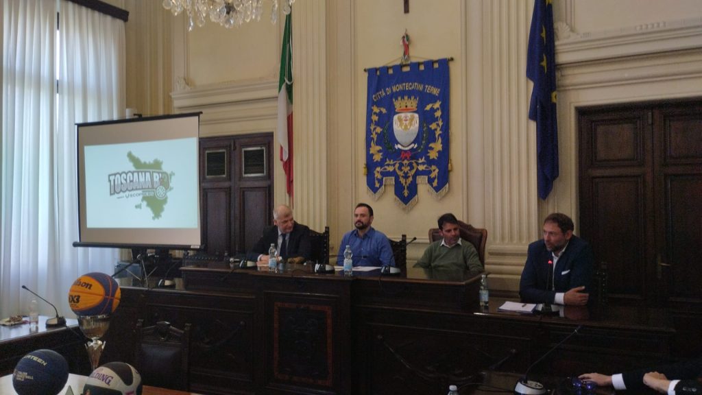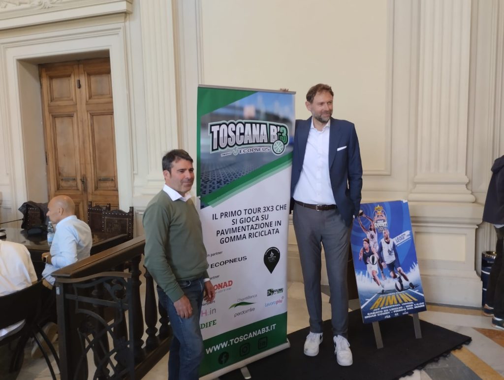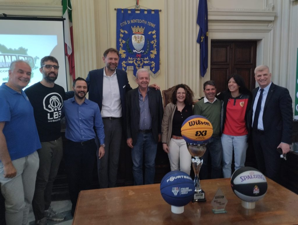 Passione, sostenibilità e innovazione. Questi i principi cardine del Toscana B’3, il primo torneo di basket 3 contro 3 su pavimentazione in gomma riciclata, come espresso direttamente da Giacomo “Gek” Galanda. Il consigliere Federale FIP, nonché una volta compagno di squadra dei vari Pozzecco e Basile nella Nazionale di pallacanestro, ha mostrato ai presenti presso la Sala Consiliare del Comune di Montecatini Terme il nuovo circuito regionale toscano di basket 3 contro 3.