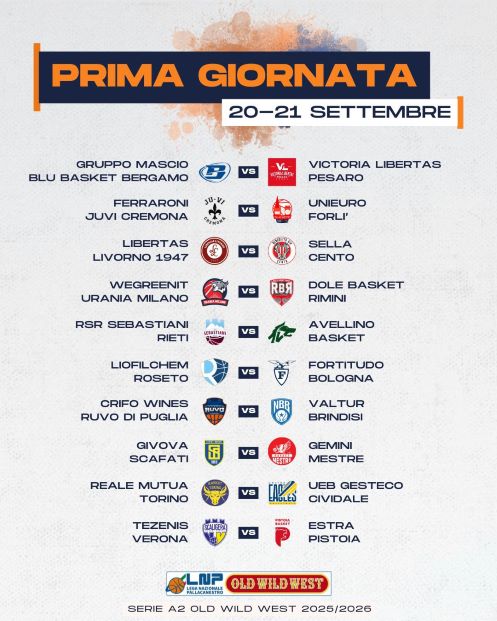 Sui canali ufficiali della LNP è stata svelata la prima giornata del campionato di Serie A2 2025/26 prevista tra sabato 20 e domenica 21 settembre. Un antipasto di quello che sarà il calendario di un’annata che si prospetta davvero interessante ed affascinante per l’alto livello raggiunto dal secondo campionato nazionale.