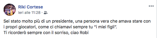 In tanti, tantissimi – un numero enorme – lo hanno omaggiato. Ognuno a suo modo. Le testimonianze dei dirigenti di Pistoia Basket e Pistoiese le abbiamo raccolte e potete trovarle sulle colonne del nostro sito internet ma non è certo possibile farlo con tutte quelle che sono state postate sui social network, ieri letteralmente invasi da belle parole per Robertone. Alcune, però,abbiamo deciso di fissarle in questo articolo. Non è presente il cordoglio delle tantissime società di pallacanestro, professionistiche e dilettanti, che hanno scritto qualcosa per il Presidente.