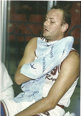 E’ quasi un anno e non sembra vero che il pivot dell’Olimpia, spinta solo pochi anni prima di quell’impresa a casa, all’altrettanto indimenticabile prima volta in A1, non ci sia più. Quante discese in Toscana seguendo l’ascesa del Pistoia Basket, contemporanea all’esplosione della potenza che è diventata la Reyer di patron Brugnaro. “Il mio cuore è diviso a metà” ci ha detto tante volte Luca Silvestrin, ormai dedito al suo lavoro in banca, alla sua bellissima famiglia ma sempre col cuore a spicchi. Tanti gli inviti raccolti per aiutare la società biancorossa in perenne stato di rilancio, con Robertone Maltinti ebbro di gioia quando vedeva i campioni di ieri a tifare i ragazzi di oggi. Nelle lunghe domeniche del lockdown, si era pure collegato dal Veneto, per giocare almeno con i ricordi nelle dirette di PistoiaSport, insieme ad un altro mito anche lui passato pure dalla Reyer, come Ron Rowan. Sarebbe stato maledettamente bello parlare con lui di questo libro che Frank Vitucci sta portando in giro per l’Italia anche nel ricordo di Luca. “Lui teneva molto a Pistoia– ci dice emozionato il coach di Brindisi, da più di 25 anni sulle panchine di serie A1, un coltiva talenti alle cui cure è ora affinata la crescita di Joonas Riismaa – ne parlava spesso e anche in questo libro è citata seppur in modo volante. Lo diceva sempre Luca: Pistoia era il suo posto preferito dopo Venezia, c’era qualcosa di speciale che lo legava alla città”.