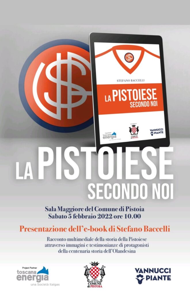 Sabato 5 Febbraio alle ore 10 nella Sala Maggiore del comune di Pistoia in cui si terrà la presentazione dell’e-book “La Pistoiese secondo noi” di Stefano Baccelli. Introduce Maria Lorello e coordina Giacomo Signorini. Si tratta della storia dell’Olandesina dalla sua nascita ai giorni nostri attraverso un racconto intervallato dalle video interviste inedite ai protagonisti: calciatori, dirigenti, allenatori, giornalisti, tifosi. Testimonianze che ripercorrono 100 anni di vita vissuta e di ricordi colorati di arancione. All’interno della pubblicazione trovano spazio anche la Hall of Fame e i cinque storici inni della Pistoiese.