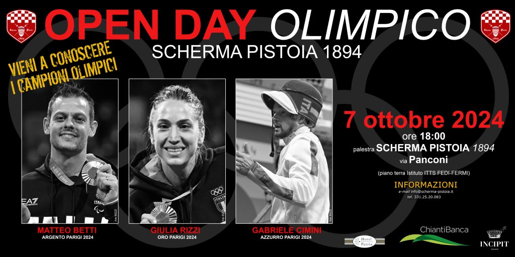 Il prossimo 7 ottobre Giulia Rizzi, Matteo Betti e Gabriele Cimini saranno presenti all’Open Day organizzato dalla Scherma Pistoia