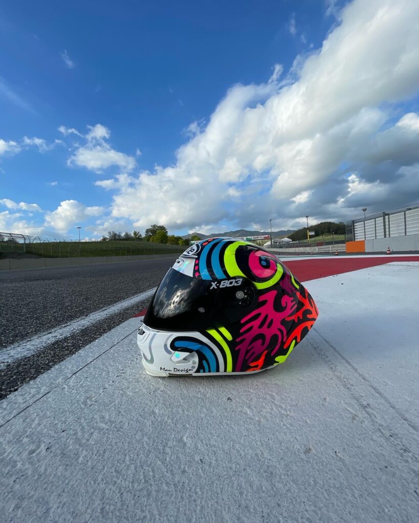Intanto una novità ci sarà di certo: un casco con un nuovo disegno e nuovi colori. «Ho scelto un concept più variopinto e sgargiante, quasi in stile Valetino Rossi. C’è una buona base bianca davanti, ma nel retro è come se fosse una tavolozza nera piena di colori. Mi piace tantissimo: speriamo anche che porti bene!».