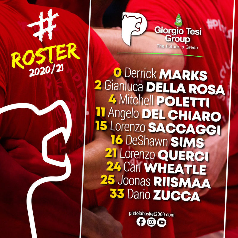 Sono stati ufficializzati i numeri di maglia dei giocatori che compongono il roster del Pistoia Basket per la stagione 2020-21. Partendo dai volti noti, confermato il #2 per capitan Gianluca Della Rosa e il #24 per Carl Wheatle, mentre Angelo Del Chiaro è passato al numero #11 “lasciando” il #16 a DeShawn Sims. #0 per l’altro statunitense, Derrick Marks, mentre Mitchell Poletti ha scelto il #4. I cavalli di ritorno Lorenzo Saccaggi e Lorenzo Querci hanno optato rispettivamente per il #15 e il #21. Chiudono il #25 di Joonas Riismaa e il #33 di Dario Zucca.