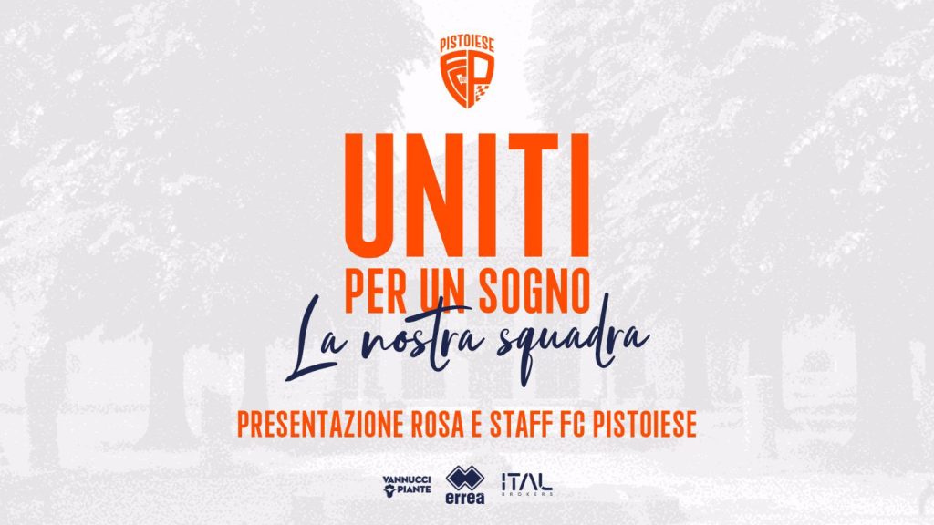 Era già nell’aria da alcuni giorni, ma adesso è anche ufficiale. La data scelta per la presentazione della prima squadra e dello staff tecnico della Pistoiese è giovedì 5 settembre. In tale serata, a partire dalle ore 21, il gruppo arancione saluterà la città e i tifosi a pochi giorni dal via ufficiale del campionato, previsto per domenica 8 settembre in quel di Fiorenzuola. L’evento si svolgerà al Parterre di Piazza San Francesco ed è stato presentato con lo slogan “Uniti per un sogno – La nostra squadra”. La società ha fatto inoltre sapere che è prevista la presenza di alcuni giocatori della Pistoiese che prenderanno parte ed animeranno la serata.