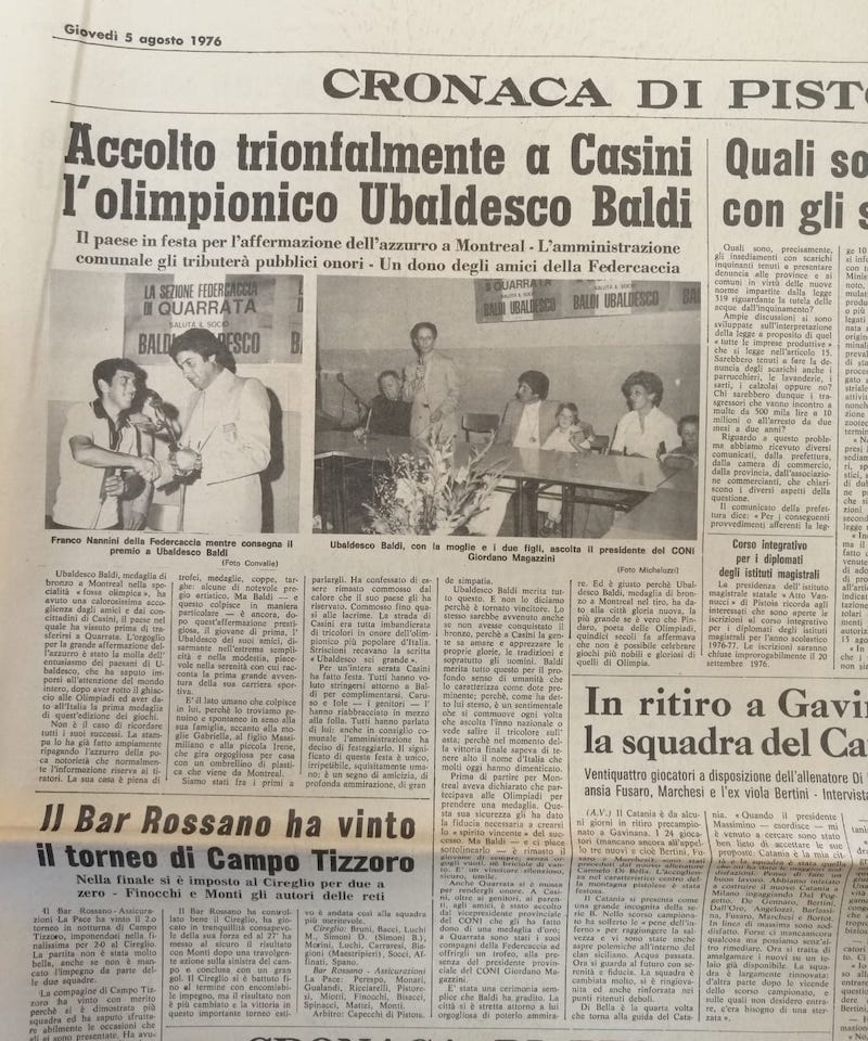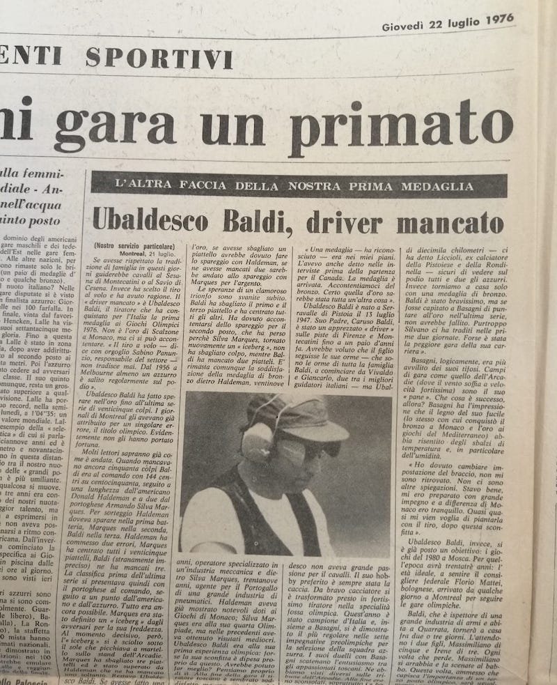 Bronzo olimpico nel tiro al volo a Montreal 1976, Ubaldesco Baldi sarà omaggiato con l’intitolazione di una via nella frazione di Casini a Quarrata