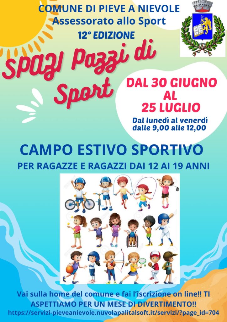 L’Amministrazione Comunale di Pieve a Nievole ha annunciato “Spazi pazzi di sport”, un’iniziativa estiva, giunta alla dodicesima edizione, interamente dedicata ai più giovani (dai 12 ai 19 anni), con l’obiettivo di promuovere uno stile di vita sano, incentivare la socializzazione e offrire l’opportunità di avvicinarsi gratuitamente a numerose discipline sportive. Si tratta di un percorso articolato in due settimane, durante le quali i partecipanti potranno sperimentare diverse attività, conoscere istruttori qualificati e vivere momenti di condivisione e crescita personale.
