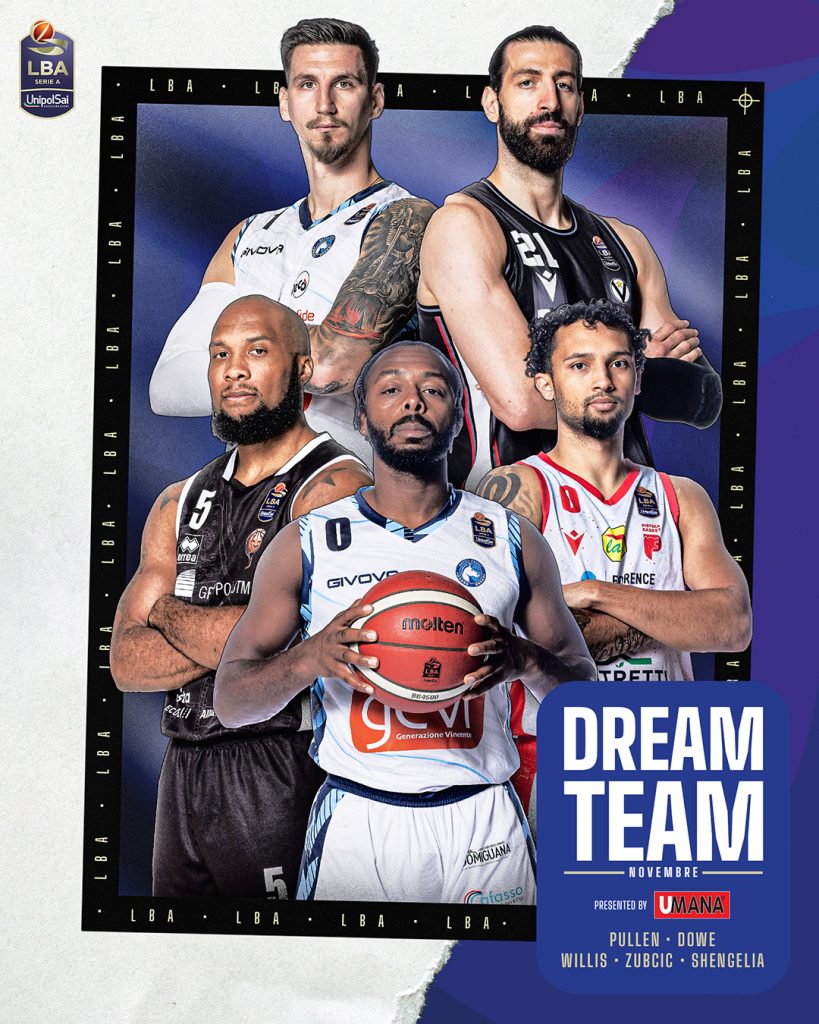 Per Payton Willis quello di novembre è stato un mese da incorniciare e anche la LBA ha riconosciuto l’enorme apporto dato sul parquet dal numero 0 dell’Estra Pistoia. Willis è stato infatti inserito nel Dream Team del mese di novembre selezionato proprio da LBA, assieme ad altri quattro elementi che negli scorsi trenta giorni hanno trascinato le proprie squadre a ripetuti successi. Nello spot di play ecco Jacob Pullen, che proprio sabato sarà di scena al PalaCarrara con Napoli, che come high score a novembre vanta i 33 punti realizzati contro Varese. Come guardia c’è Payton Willis, sontuoso trascinatore dei biancorossi nella storica vittoria al Mediolanum Forum di Assago.