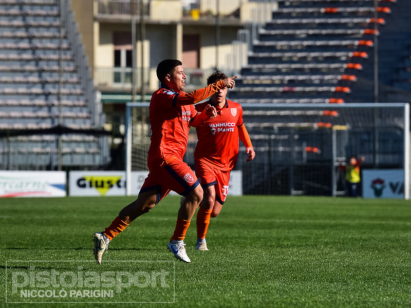 Al 17’ arriva la svolta della gara. Maldonado viene steso appena fuori dall’area e l’arbitro assegna una punizione da posizione invitante. Sul pallone si presenta lo stesso centrocampista ecuadoriano che, confermando le sue qualità sulla palla inattiva, supera la barriera con una traiettoria precisa e mette il pallone dove Salgado non può arrivare. È 0-1 Pistoiese, con gli arancioni che sbloccano finalmente il match. Arriva anche il terzo cambio per gli arancioni: Lucarelli inserisce Diallo al posto di Pinzauti, mantenendo alto il peso offensivo e cercando freschezza nel reparto avanzato. Al 27’ la Pistoiese va vicina al raddoppio. Ripartenza ben condotta dagli arancioni, con Russo che, arrivato nei pressi del limite dell’area, serve sulla destra Saporetti. L’esterno si accentra e prova la conclusione a giro con il mancino, ma Salgado si distende bene e respinge, salvando ancora una volta i padroni di casa. Al 35’ la Pistoiese avrebbe anche l’occasione per chiudere la partita. Bellissimo contropiede arancione orchestrato da Russo, che lancia in profondità Diallo. L’attaccante liberiano si invola verso la porta, supera anche Salgado in uscita e viene steso, ma il direttore di gara interrompe tutto segnalando un dubbio fuorigioco, tra le proteste degli arancioni.