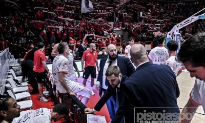 Infine una considerazione di coach Della Rosa su Filippo Gallo apparso oggi con una vistosa fasciatura alla mano sinistra: «A Pesaro ha preso una botta molto forte, non ha fratture ma comunque ha molto fastidio e ha dovuto fasciarlo. Il dolore è ancora forte e chiaramente questo un po’ lo condiziona»