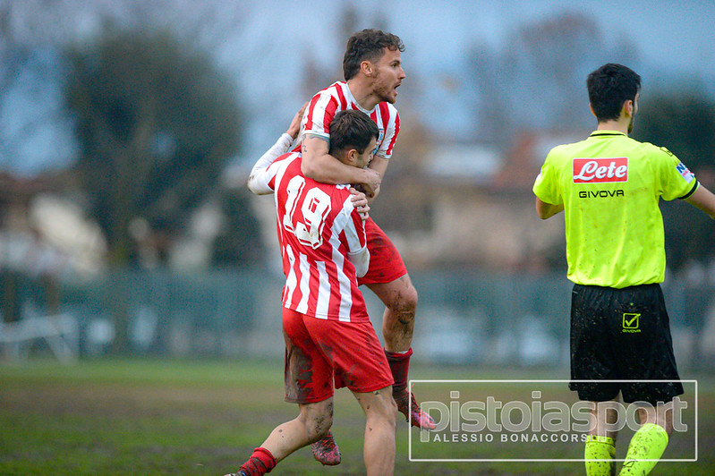 La risposta dei padroni di casa è però quasi immediata e, al 12′, grazie a una bella giocata sulla fascia, Rugiati serve un assist perfetto per Rosati che prima colpisce di testa, e dopo la respinta di Gega è il più lesto ad avventarsi sul pallone e a pareggiare i conti. Al 37′ è ancora una volta Remedi che, dopo un cross non perfetto dalla destra, approfitta dell’incertezza di Calu: il portiere respinge il pallone verso l’attaccante che, da pochi metri, è bravo a depositare in rete al volo. Allo scadere del primo tempo c’è anche un cambio per il Pietrasanta: esce per infortunio Maggi ed entra Moriconi. Nel secondo tempo le condizioni del Pertini peggiorano ulteriormente ma la partita mantiene la stessa trama del primo: tanta lotta soprattutto a centrocampo, poche emozioni. I padroni di casa, con le mosse di mister Falivena, tentano qualche cambio offensivo per provare a riprenderla, prima con Aiazzi e poco dopo con Fruzzetti.